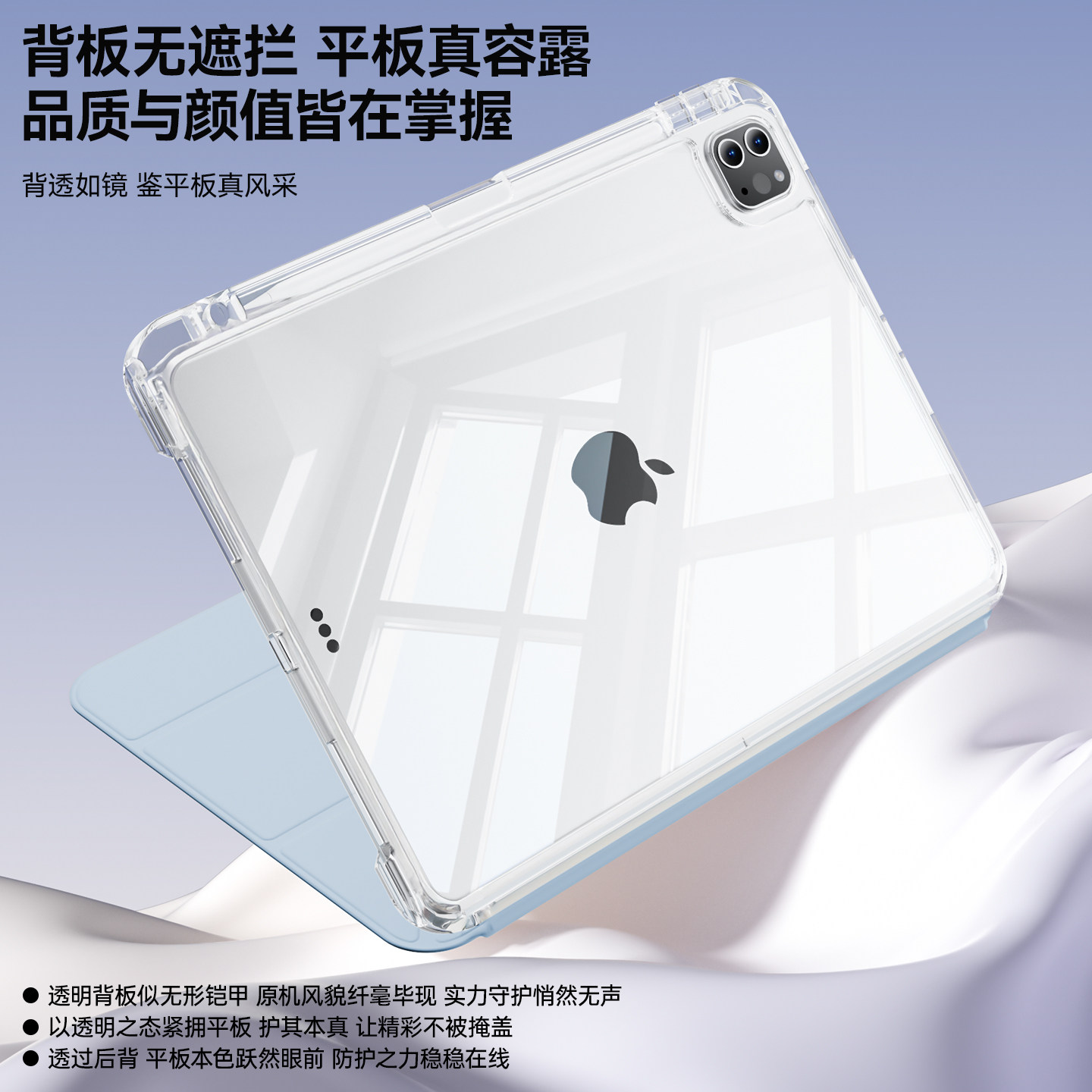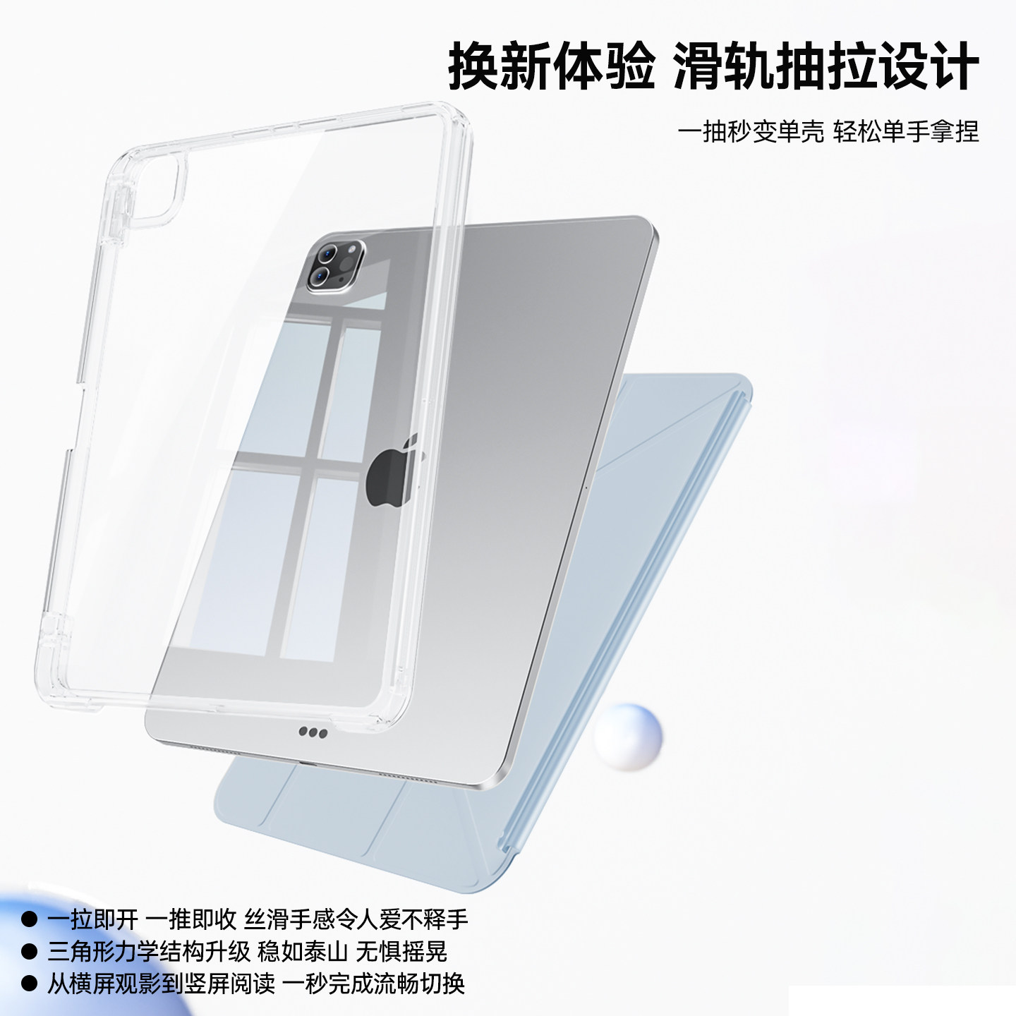 ipadair7保护套mini6滑轨抽拉拆分ipad11带笔槽十代保护壳透明防弯撞摔pro软全包3y简约轻薄air4/5硬底气囊13