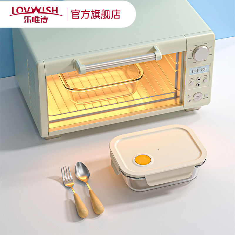 乐扣乐扣保鲜盒玻璃饭盒便当盒分隔微波炉加热专用上班族长方形碗