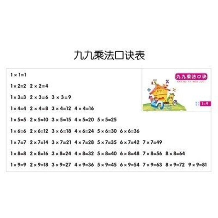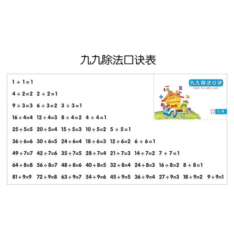 小学生九九乘法口诀卡数学习卡片幼儿99口诀表早教除法数字学生用