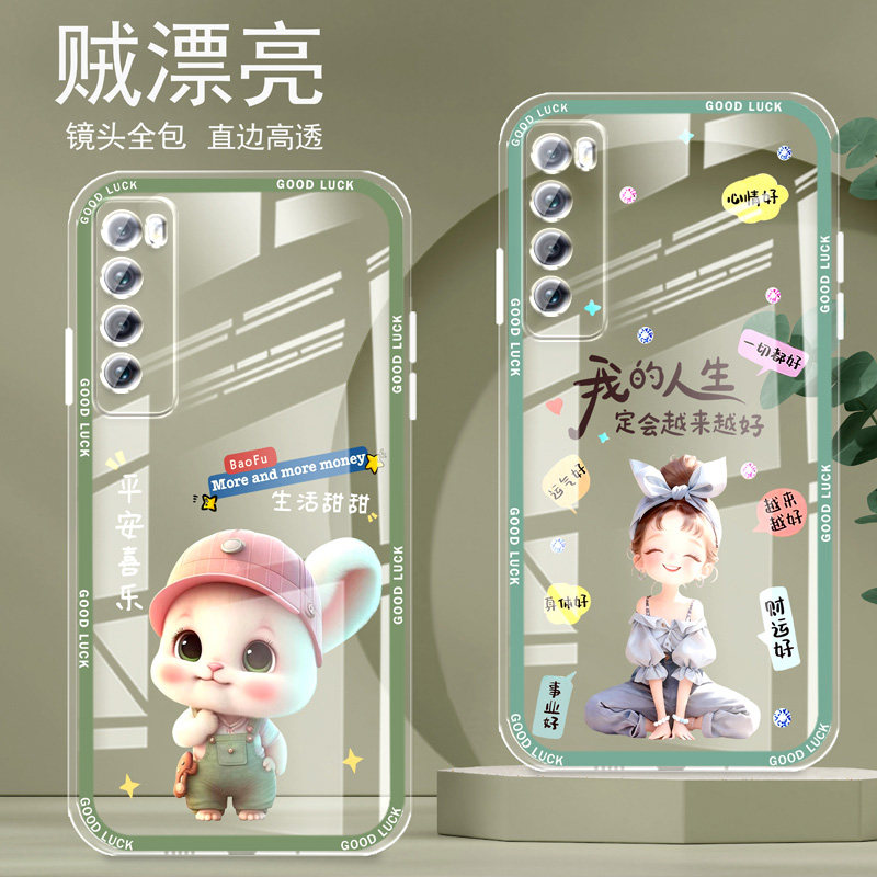 直边晶透华为NOVA7手机壳7pro新款se全包边镜头全包防摔新年保护套女硅胶软壳可爱红创意新品高级感适用于