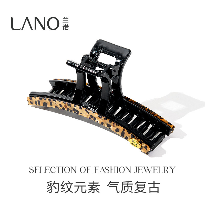 兰诺复古豹纹抓夹女高级感2025新款大号发量大后脑勺半扎发鲨鱼夹