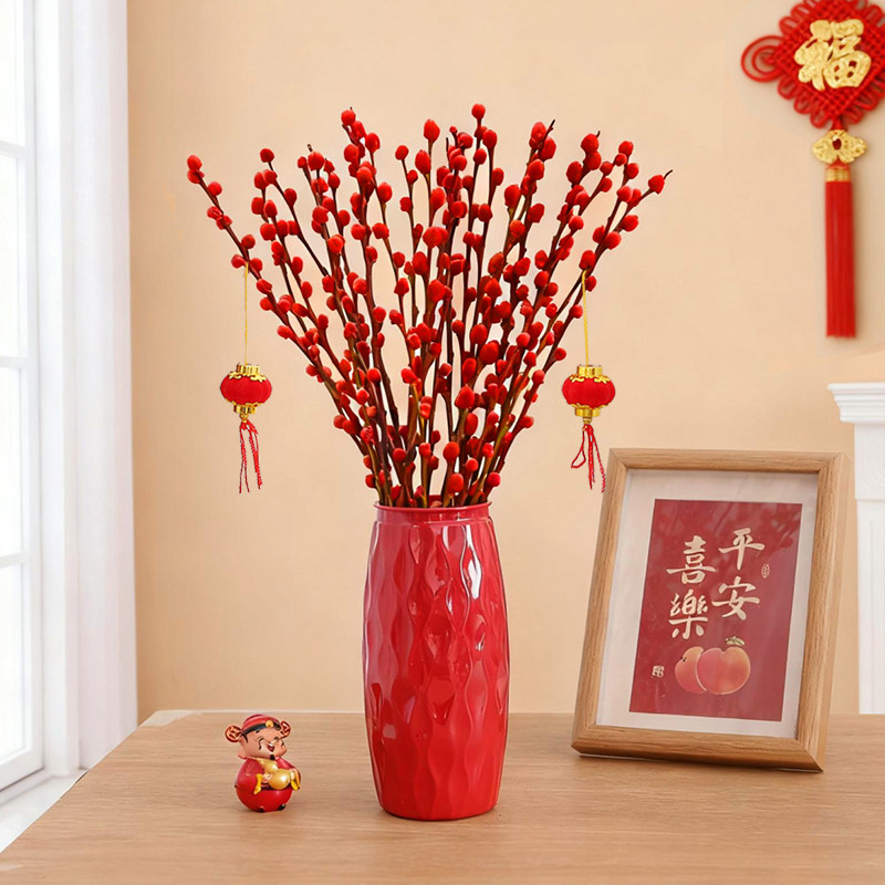 年宵干花银柳新年家用花束摆件红色喜庆室内桌面招财水培装饰鲜枝
