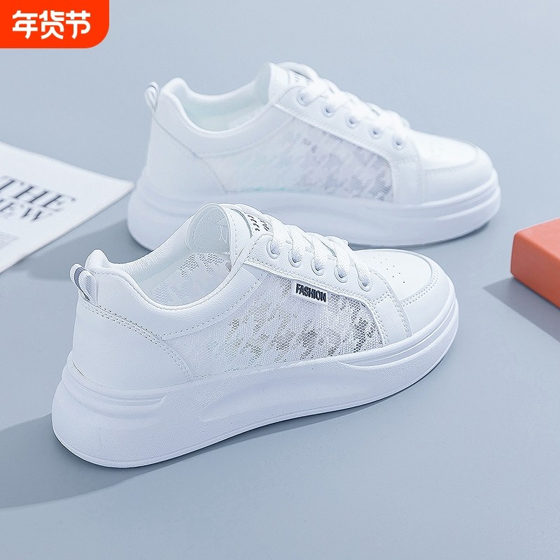 小白鞋女2025新款爆款春夏季厚底休闲鞋网面透气运动鞋网鞋板鞋