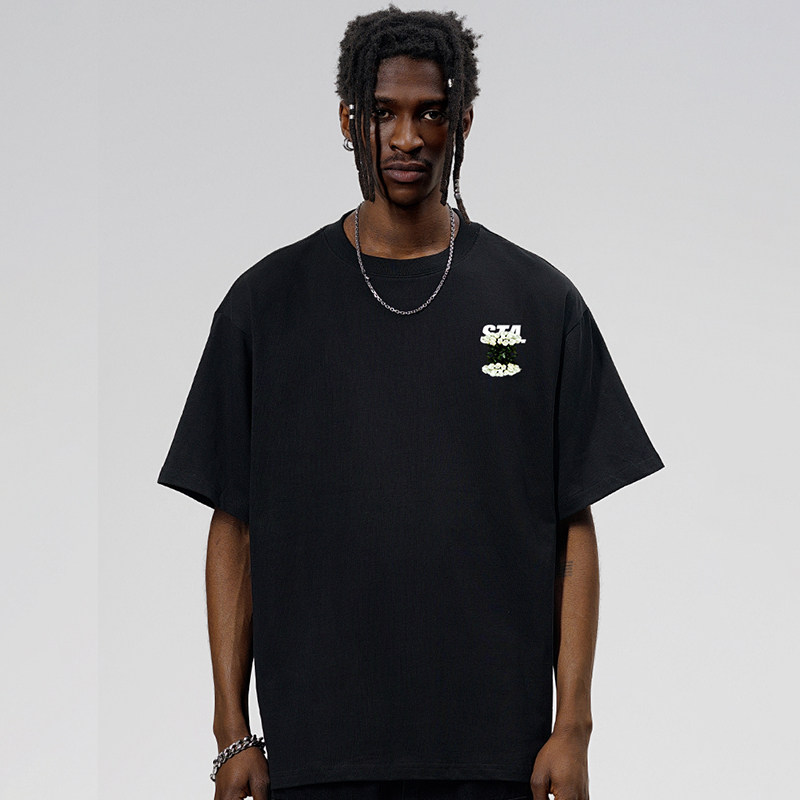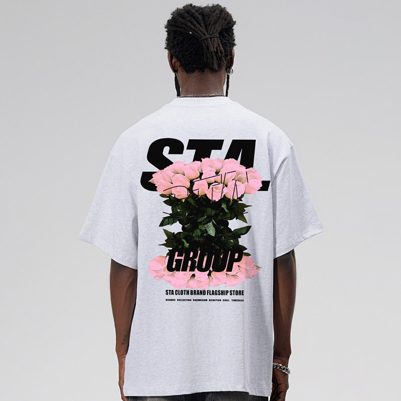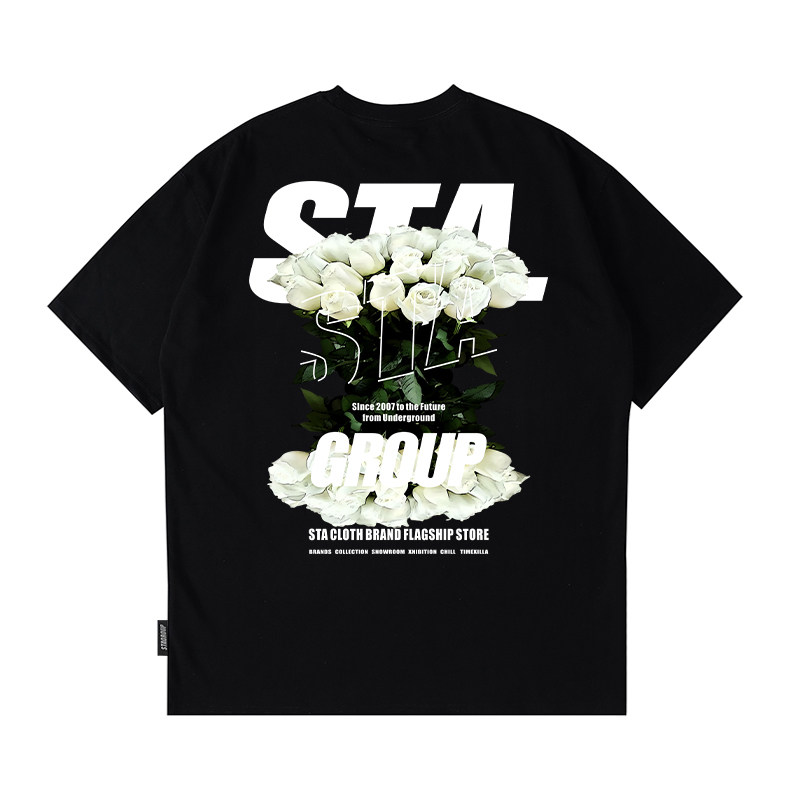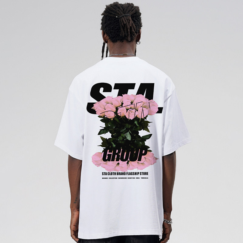 STA国潮浪漫玫瑰短袖T恤男女夏季潮牌宽松高街重磅纯棉上衣情侣