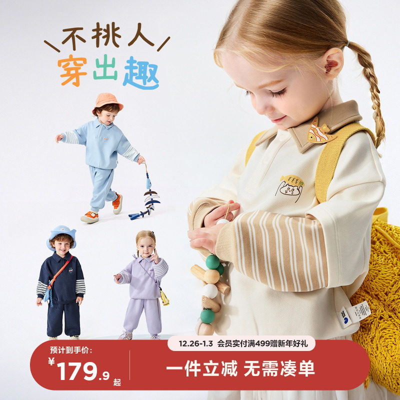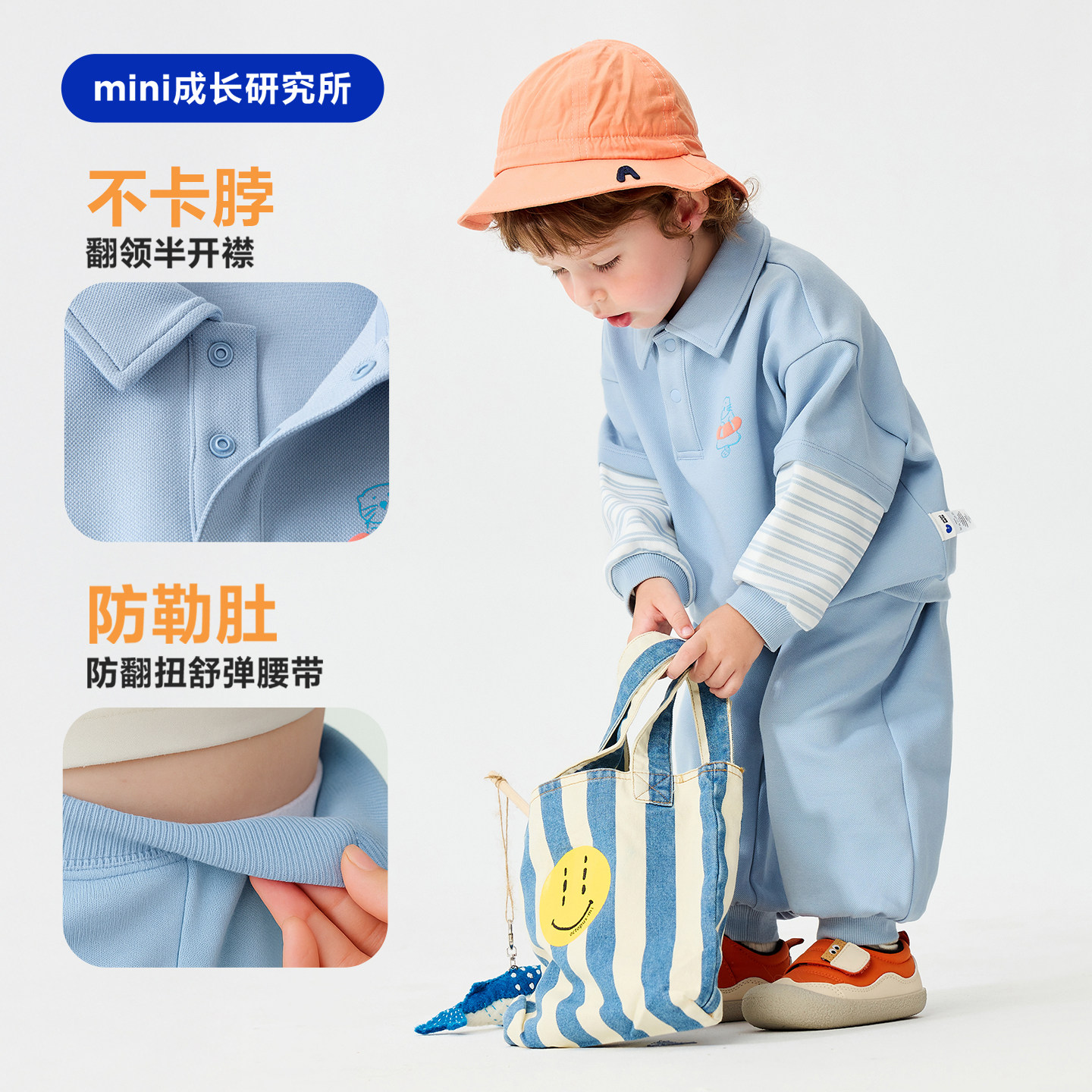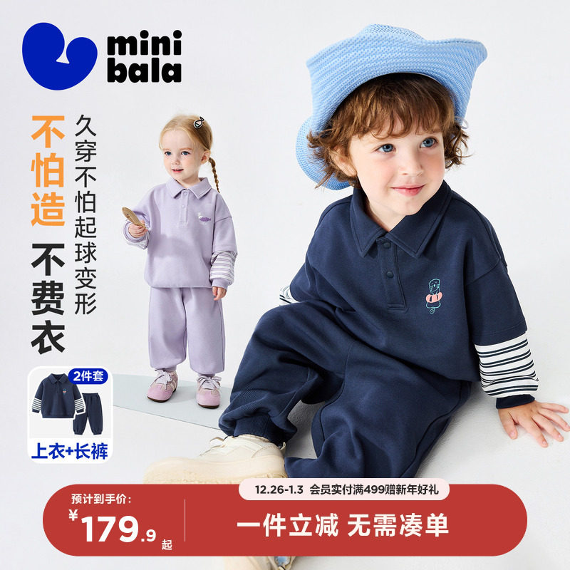迷你巴拉男女童套装儿童假两件不易起球变形卫衣卫裤2026春新品