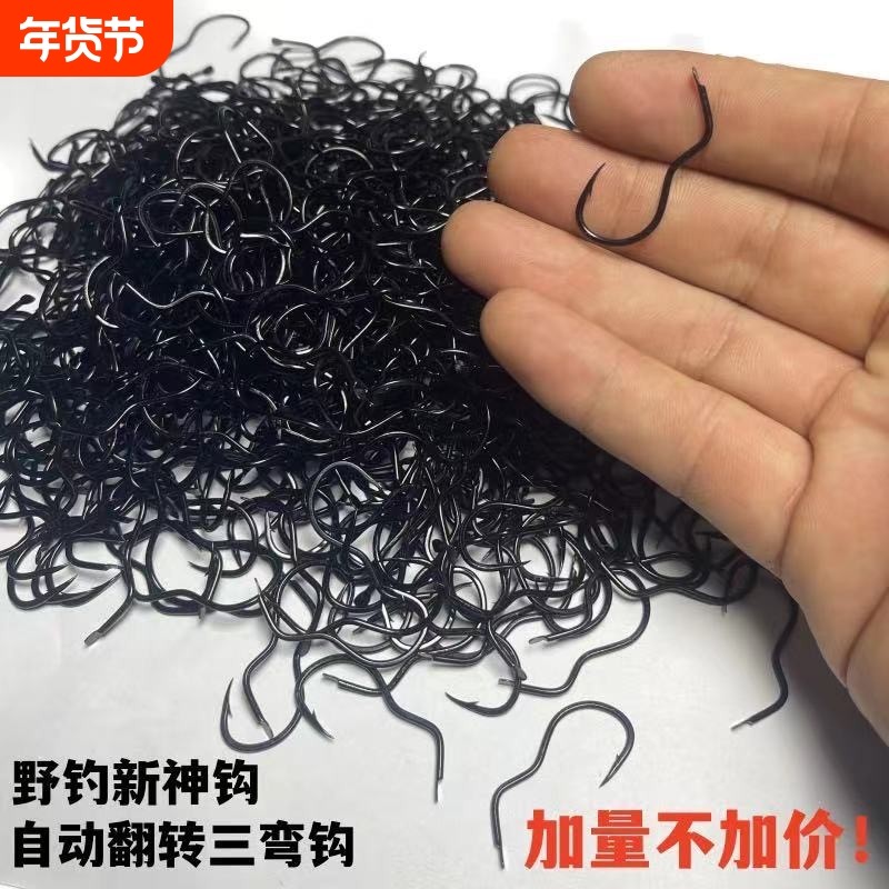 自动翻转鱼钩散装3字钩三弯钩碳钢曲柄防吐钩鲫鱼野钓垂钓溪流