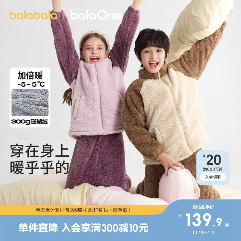 巴拉巴拉童装儿童睡衣套装男童2025冬装新款厚珊瑚绒女童家居服潮