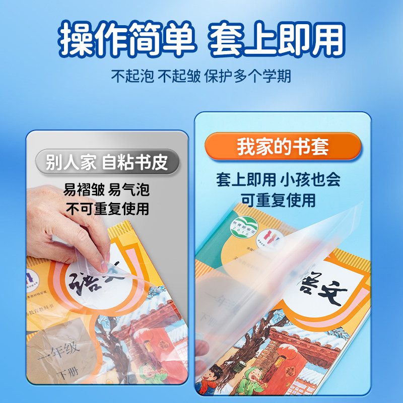 包书皮书套透明书本保护套小学生一二年级书衣16K包书纸三年级四五年级下册全套课本a4书壳初中生专用自粘书