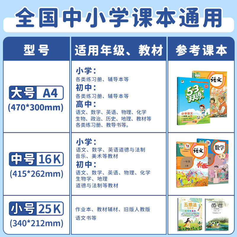 晨光加厚书皮书套透明小学生课本作业本16K包书皮儿A4防水书套保护膜一二三四五年级书皮保护套大号书本封面