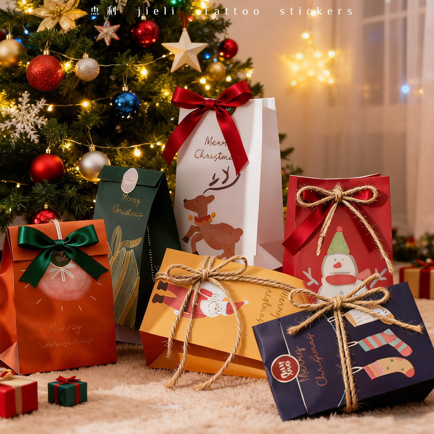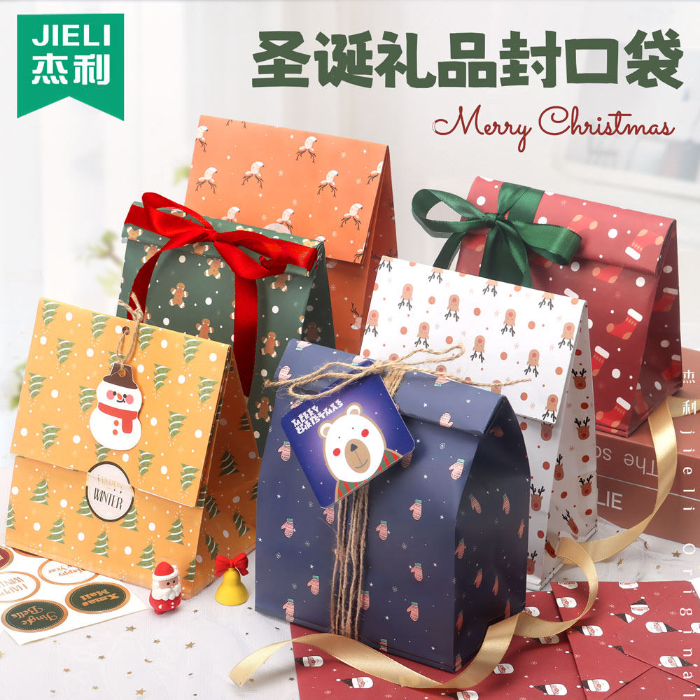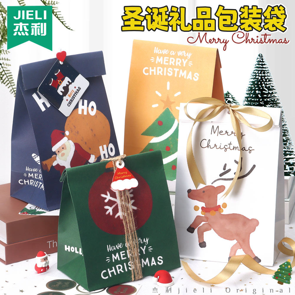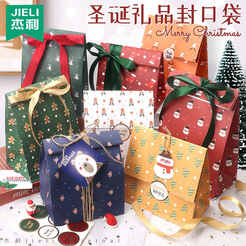 圣诞节日礼品袋纸袋包装纸糖果袋纸盒平安夜糖果打包袋礼物包装袋苹果袋礼物袋子送封口贴2026新款牛皮纸袋