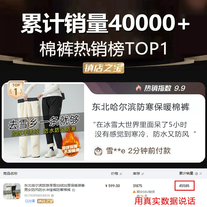 东北哈尔滨滑雪加绒加厚保暖装备男女防寒棉裤防风防水冲锋裤冬季