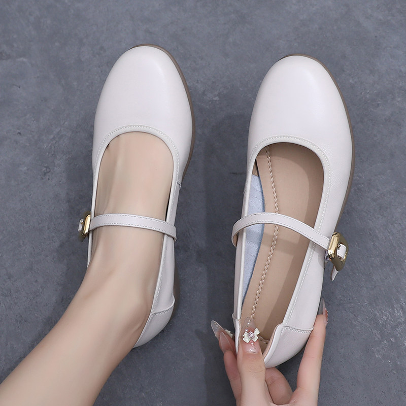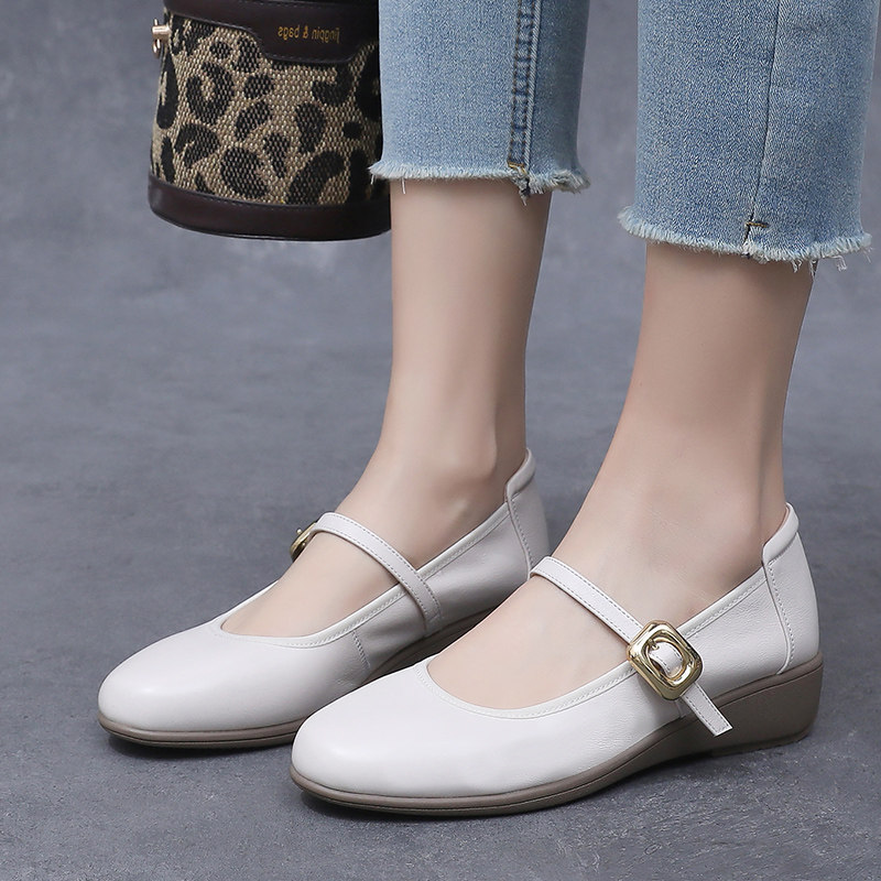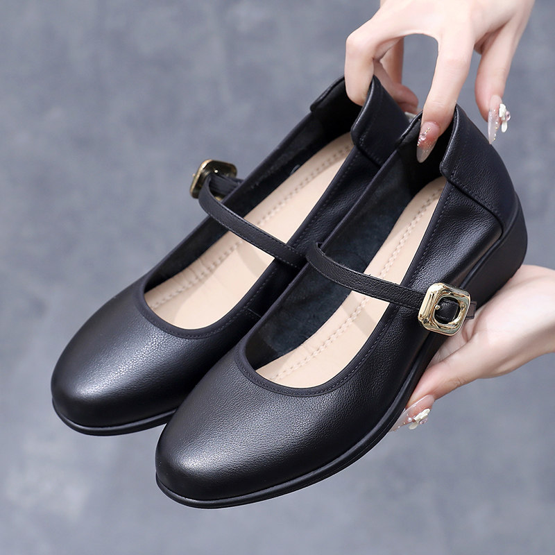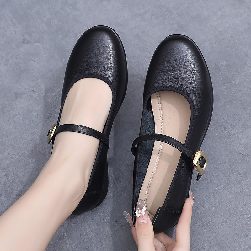 软皮妈妈鞋2024新款真皮软底玛丽珍鞋子女防