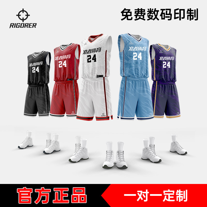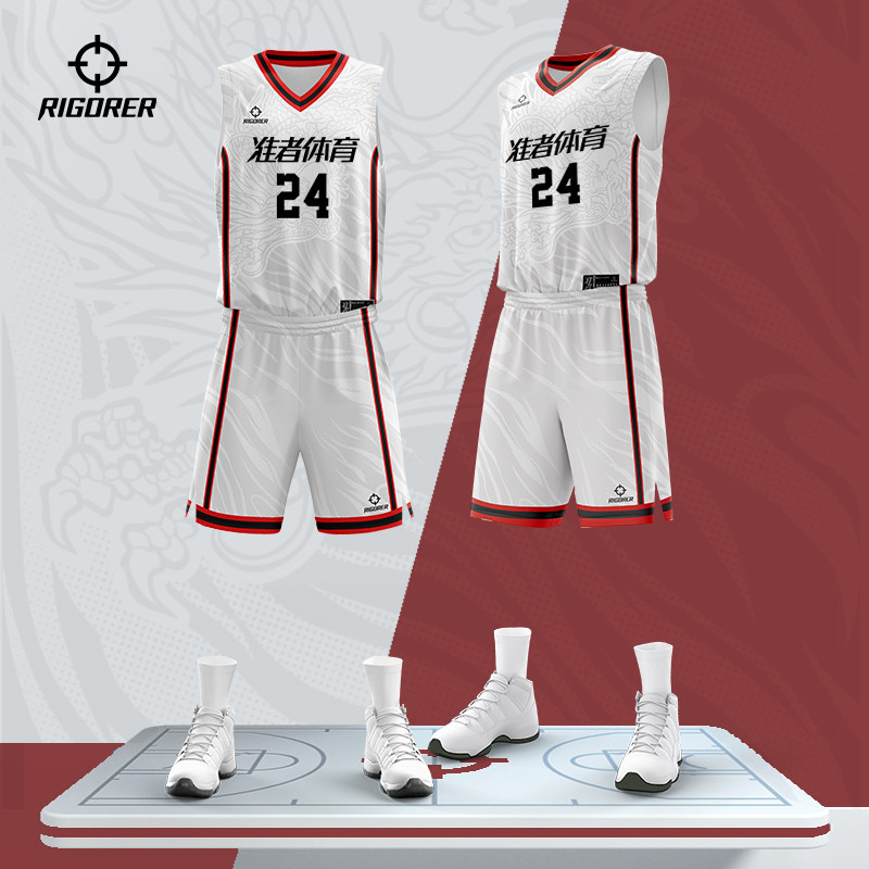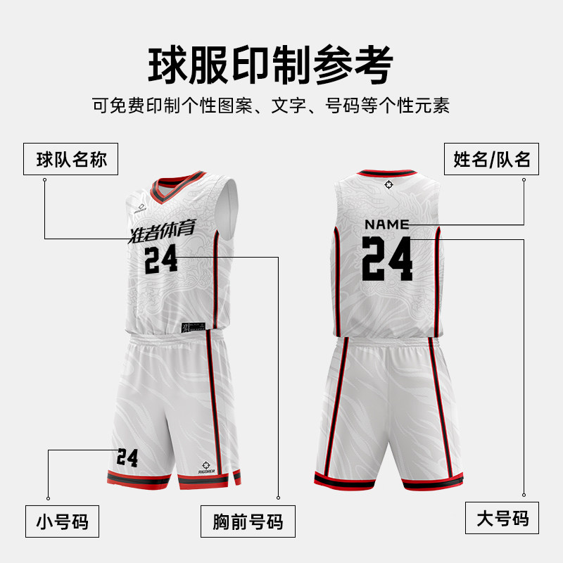 准者龙纹篮球服定制套装球衣队服红色团队比赛运动训练服10A抗菌