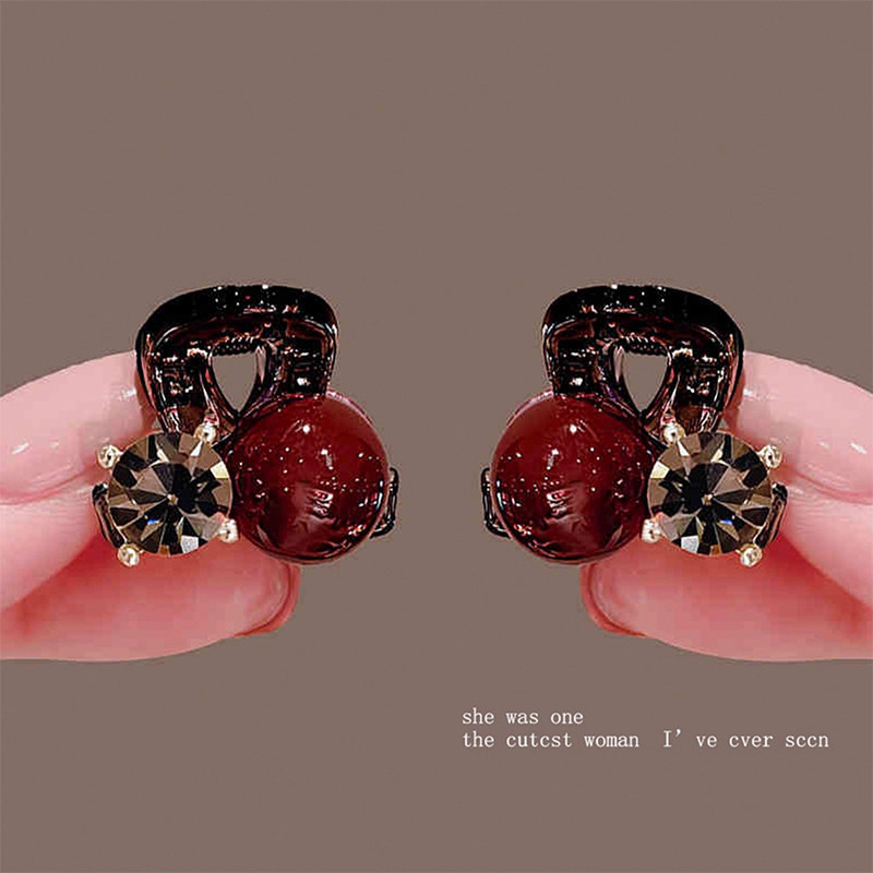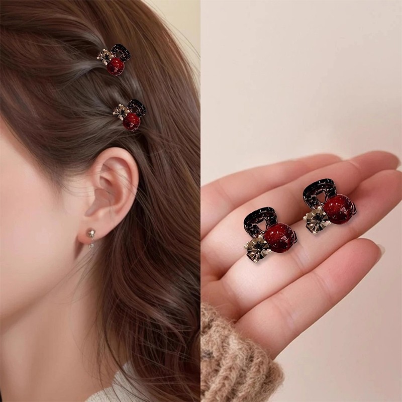 红色珍珠水钻发夹侧边精致迷你小抓夹女刘海碎发夹小夹子头饰蝴蝶