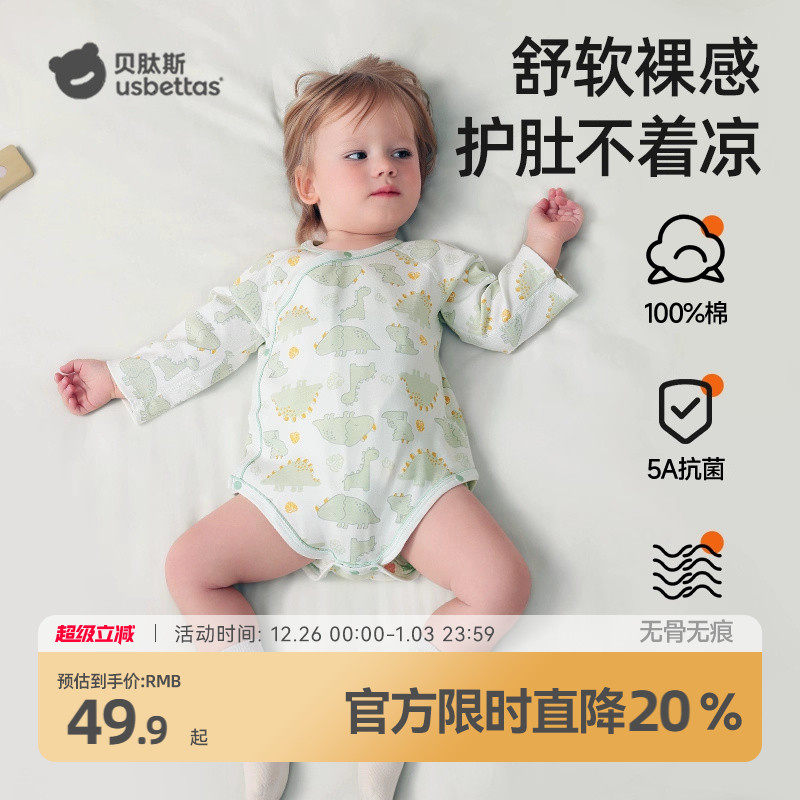 贝肽斯婴儿包屁衣秋季新款纯棉新生儿衣服男女宝宝连体哈衣长袖