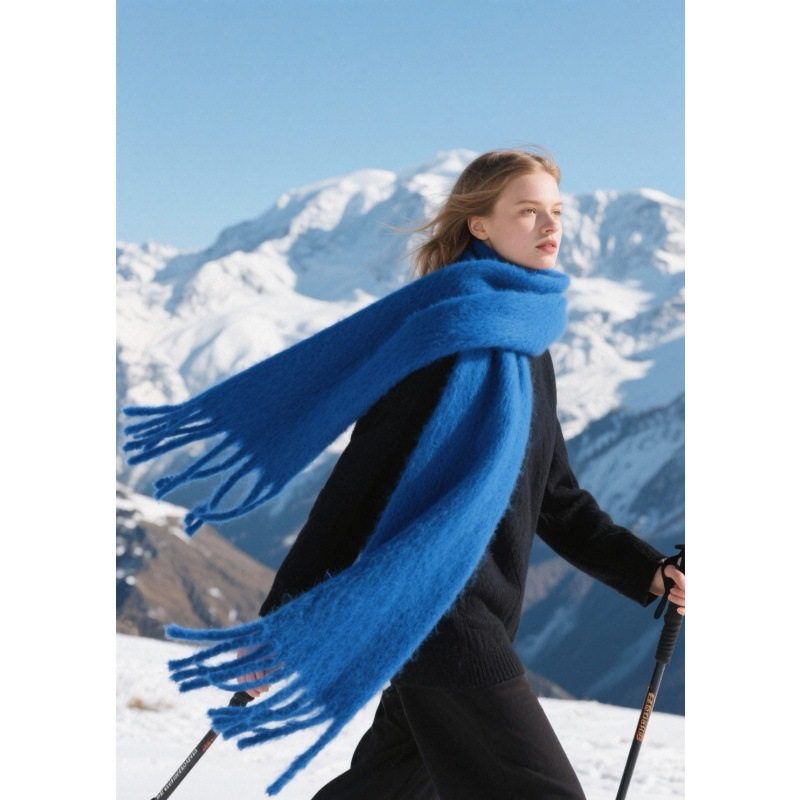 冬季马海毛纯色大围巾马卡龙色保暖遮脸防风抗寒保暖两用披肩围脖