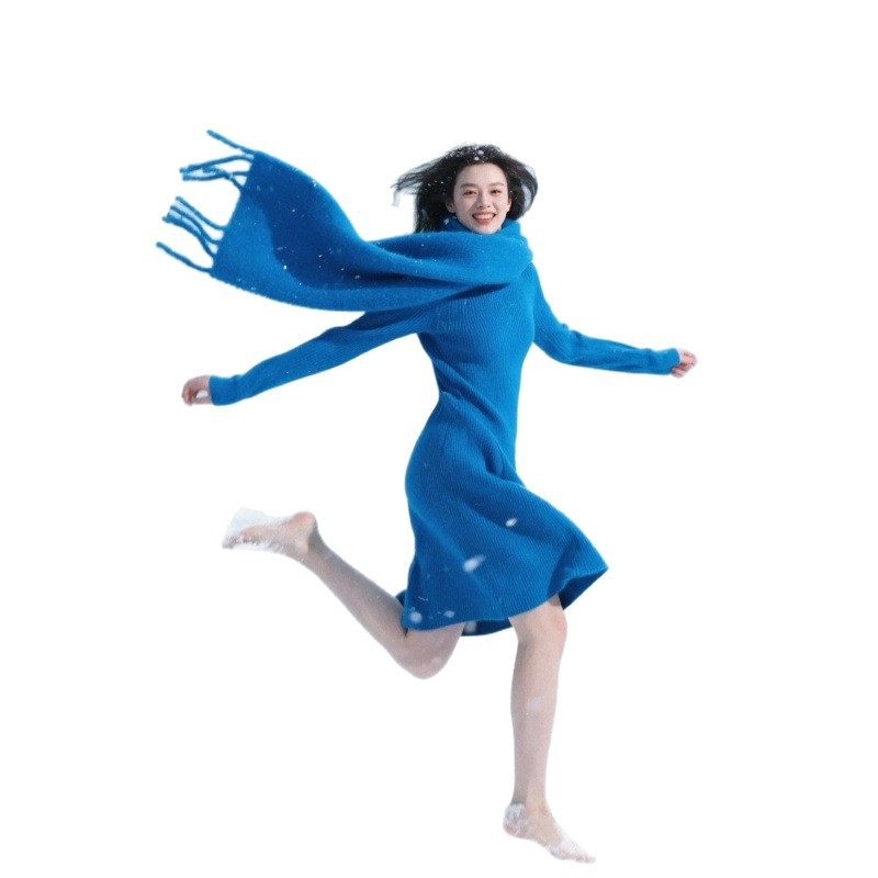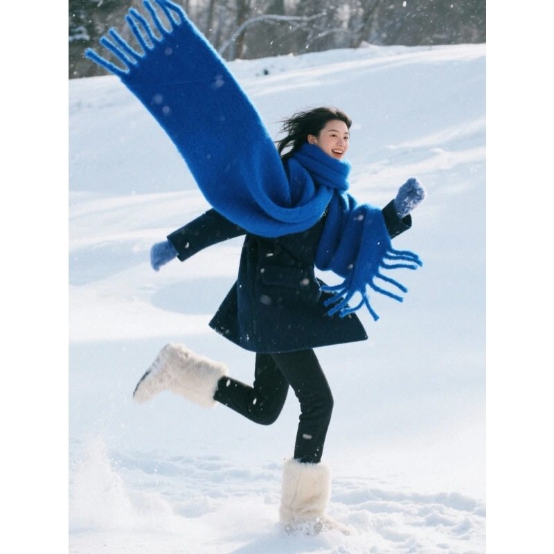 雪花双面针织围巾女秋冬季韩系氛围感加厚保暖高级感围脖复古披肩