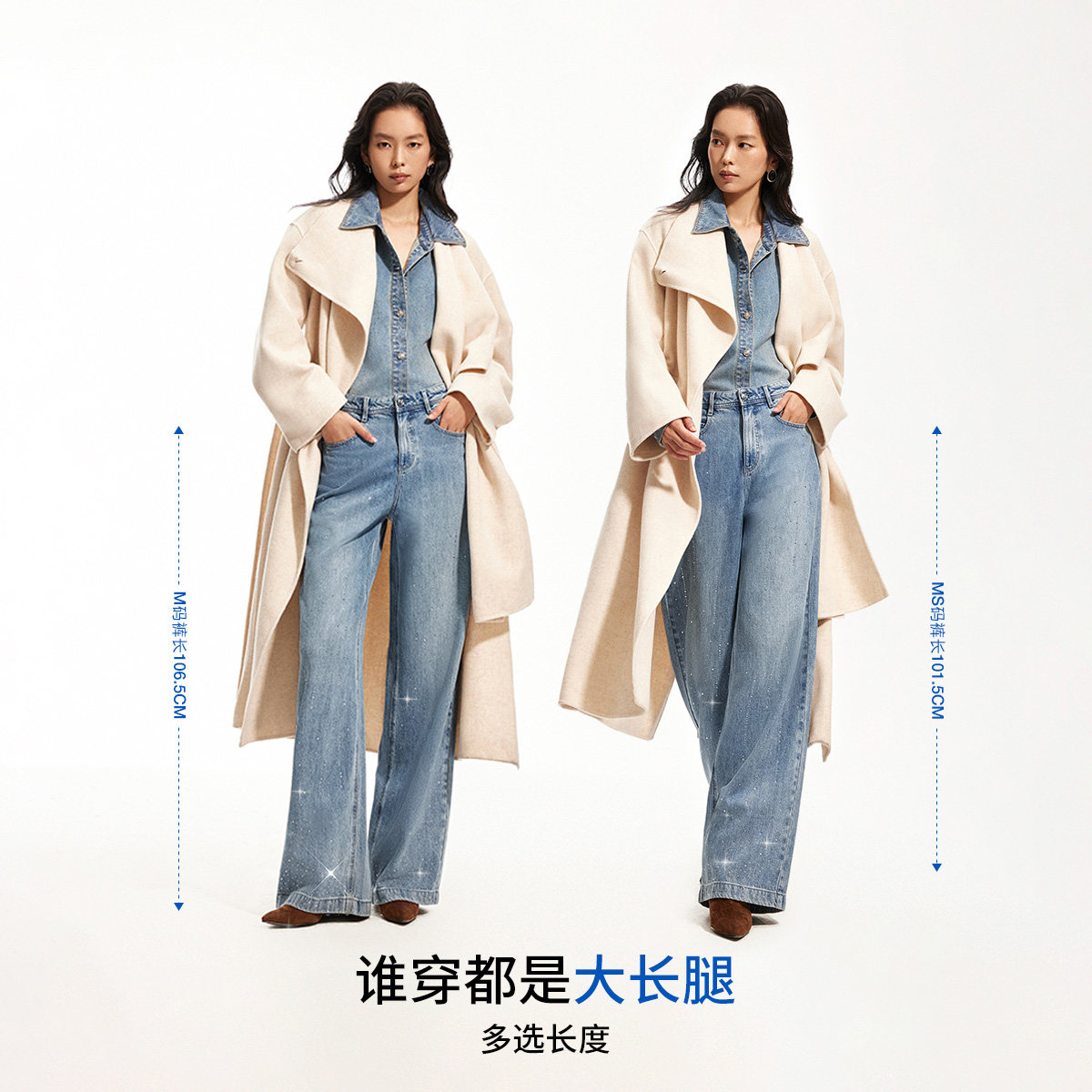 森柔牛仔|森马阔腿牛仔裤女2025秋冬白色牛仔裤简约女士高腰裤子