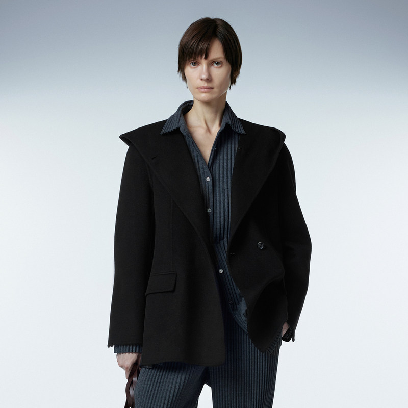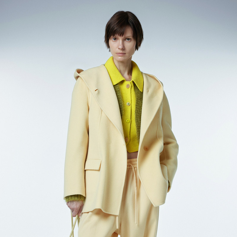 JNBY/江南布衣冬季毛呢外套连帽羊毛羊绒双面呢大衣中长款简约女