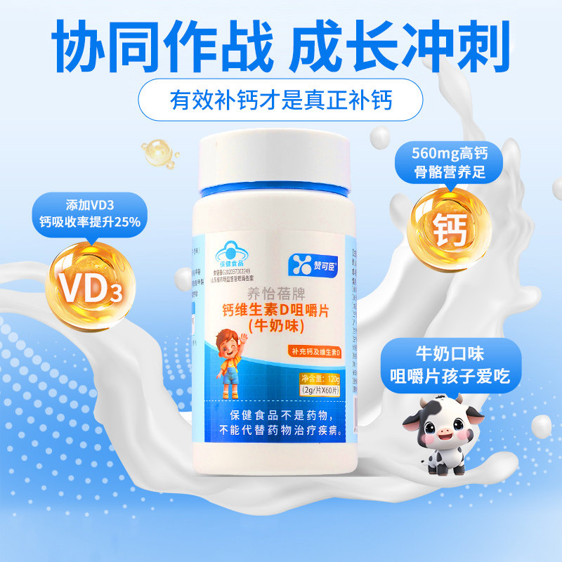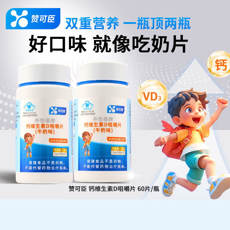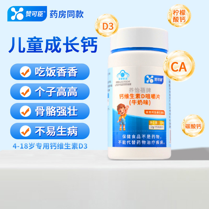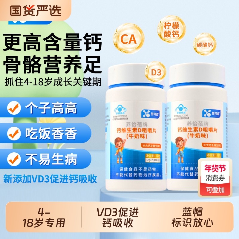 钙维生素D咀嚼片青少年儿童钙片补钙成长碳酸钙柠檬酸钙维D片