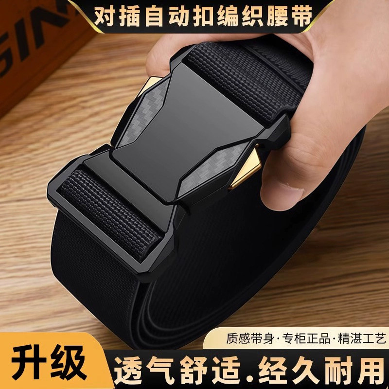 对插扣弹力皮带男自动扣时尚百搭潮流男士腰带户外尼龙帆布裤腰带