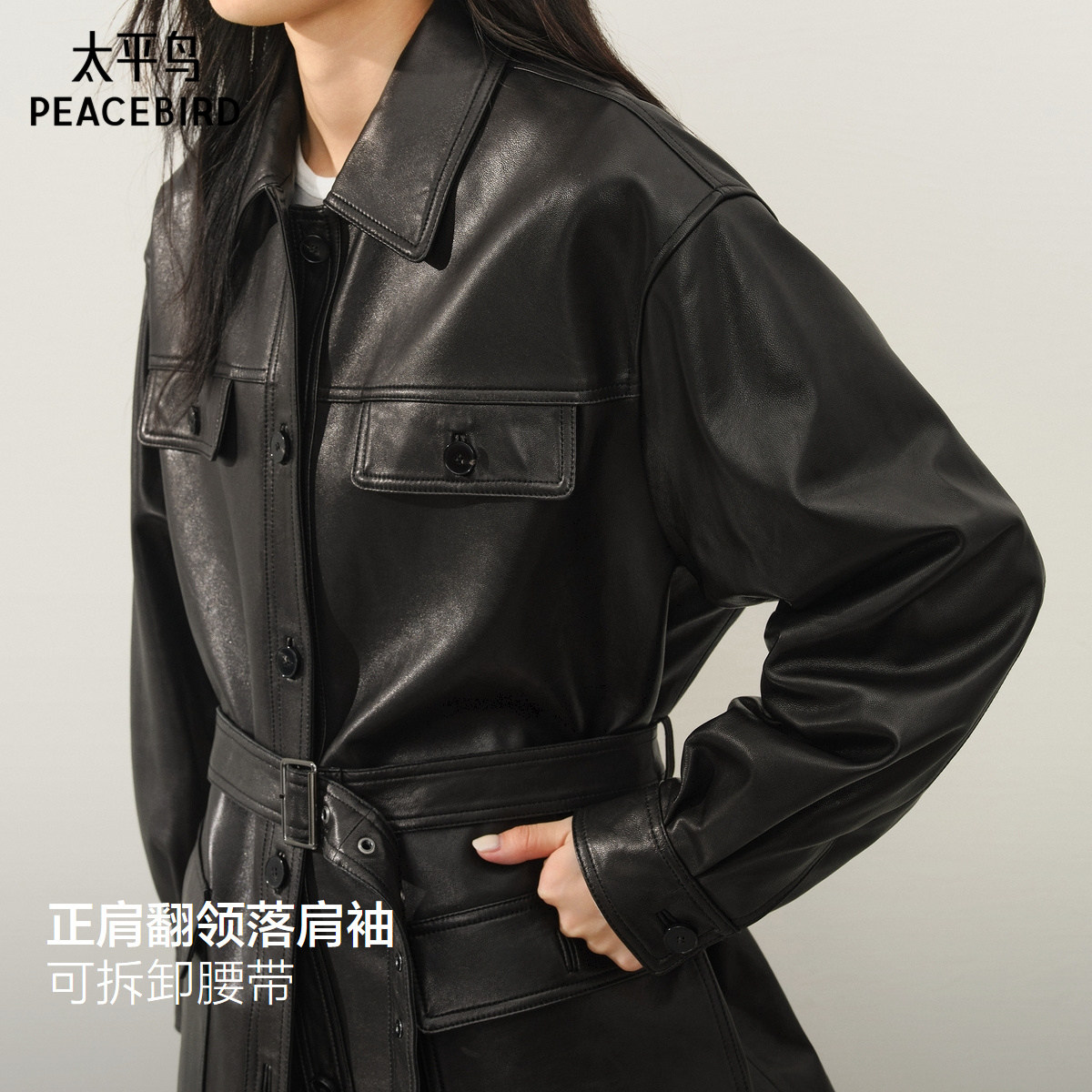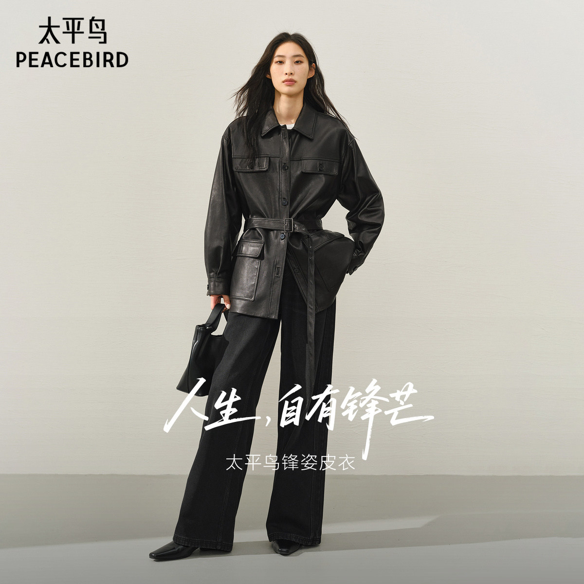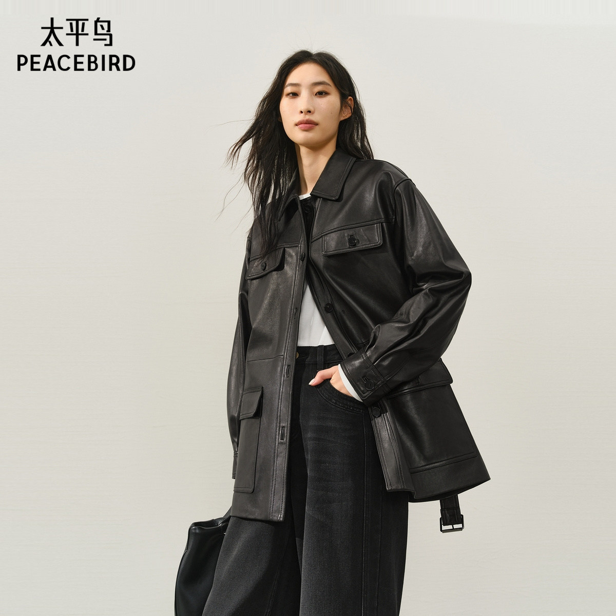 【商场同款】太平鸟摇滚黑骑士锋姿真皮皮衣廓形外套A1BDF411N*
