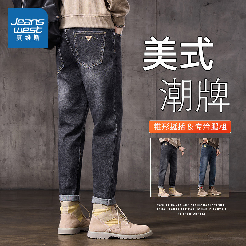 XUB真维斯锥形显瘦百搭男装牛仔裤 2025冬季新品港风直筒长裤男
