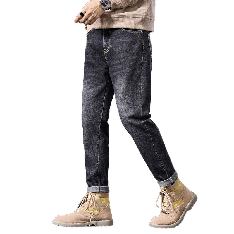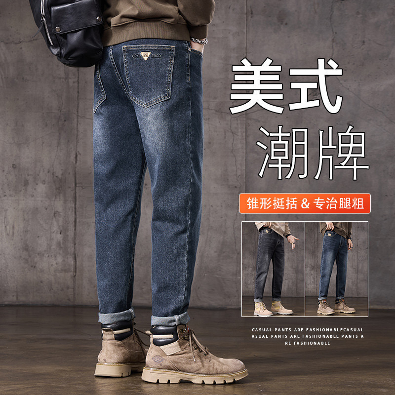 森柔牛仔|森马牛仔裤男款磨毛小脚裤子通勤基础百搭冬季长裤弹力