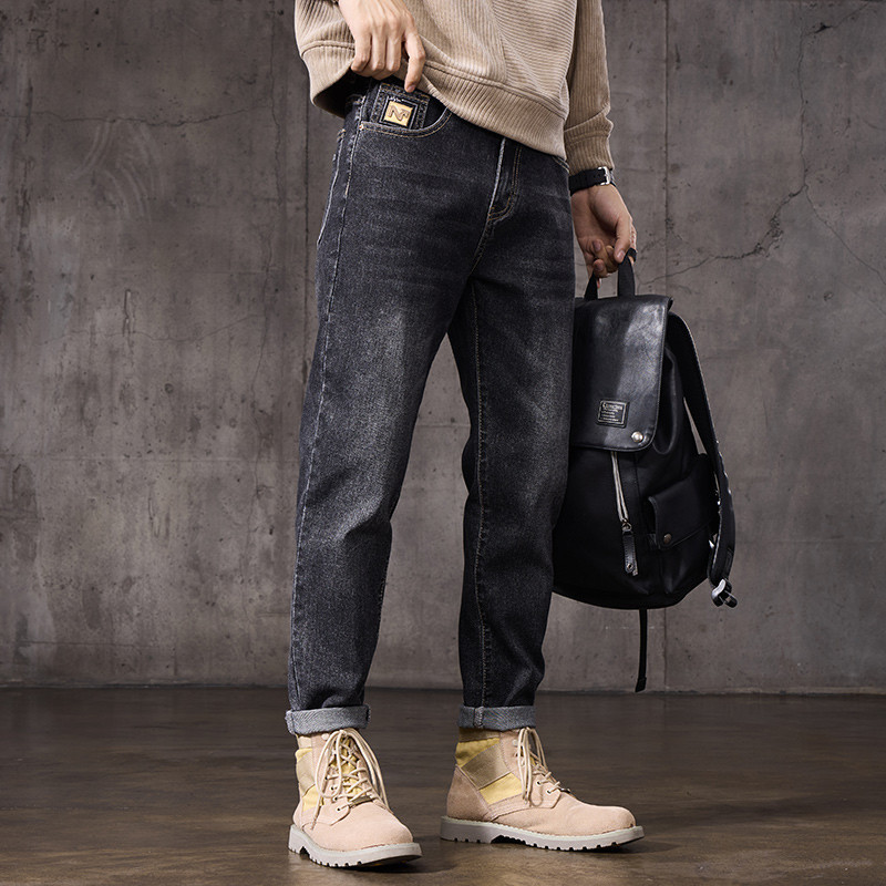 罗蒙冬季牛仔裤男士修身直筒宽松男裤2025新款休闲加绒长裤子男款