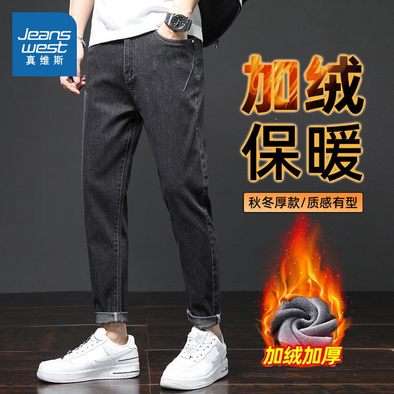 XUB真维斯男装显瘦加绒保暖牛仔裤2025冬季新品男士港风水洗长裤