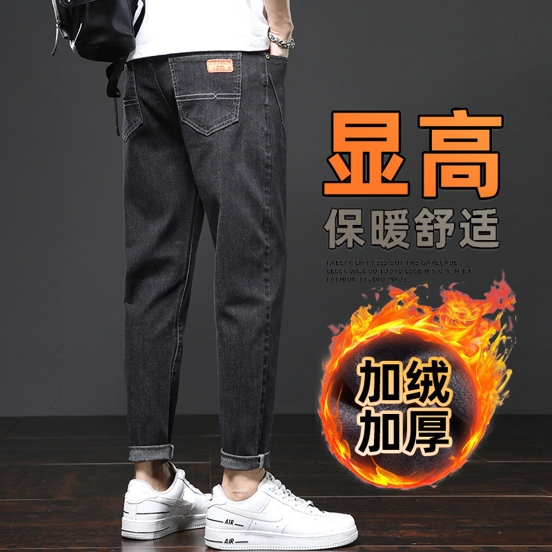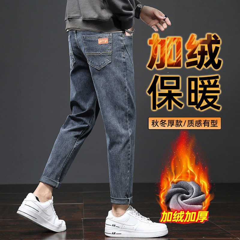 森柔牛仔|森马牛仔裤男款磨毛小脚裤子通勤基础百搭冬季长裤弹力