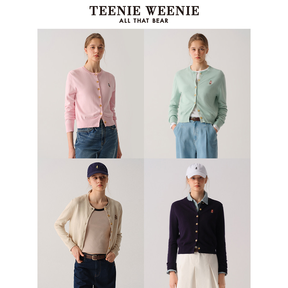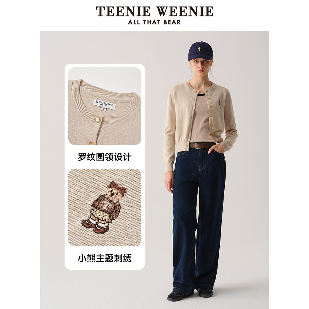 TeenieWeenie小熊奥莱毛针织衫春季优雅通勤空调衫时尚刺绣开衫女