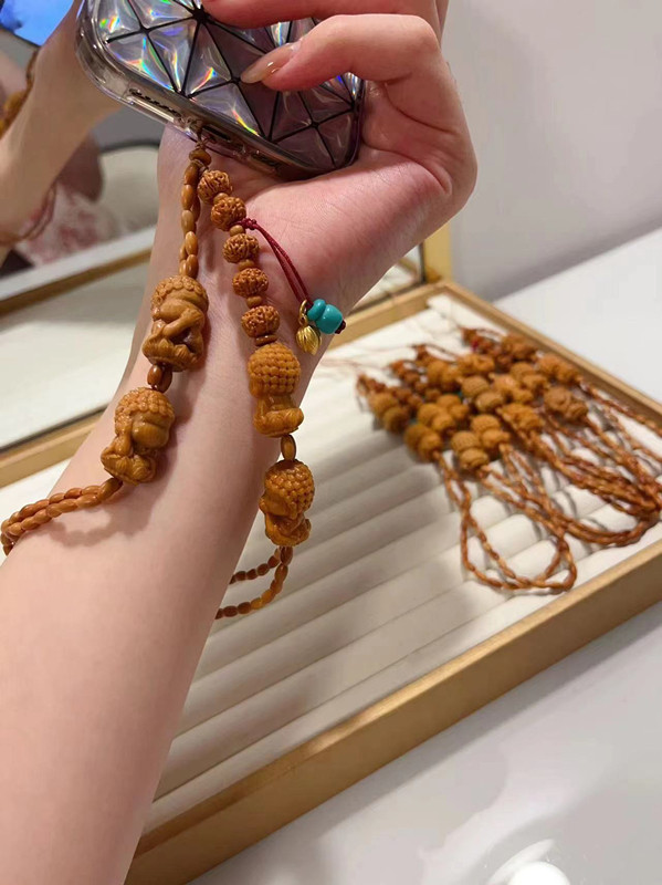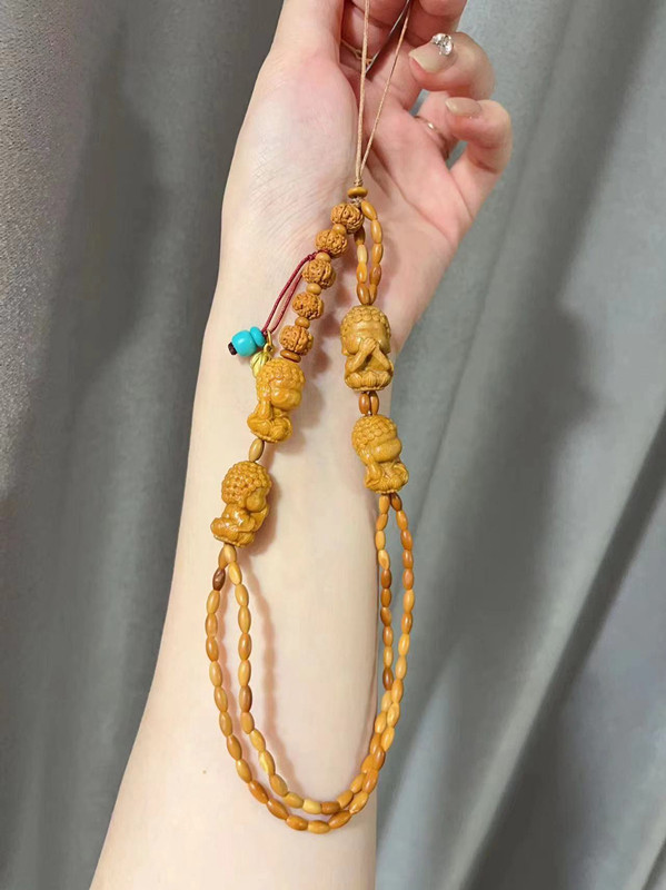 老山檀四不佛手机挂链 不听不说不看不闻 搭配橄榄核米珠 TY1004