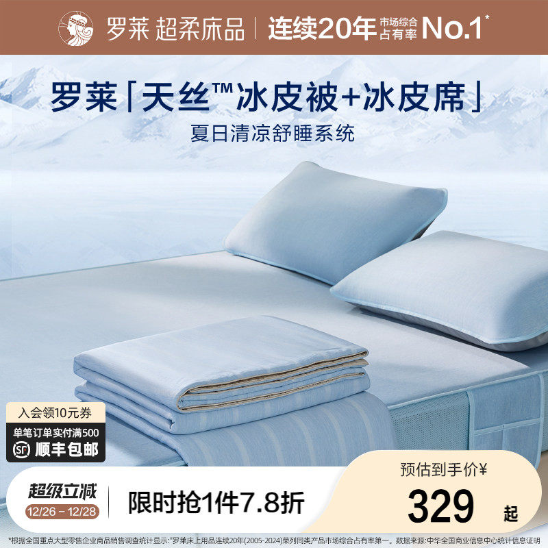罗莱家纺冰皮夏凉四件套母婴级a类抗菌凉席可机洗席子空调被夏被