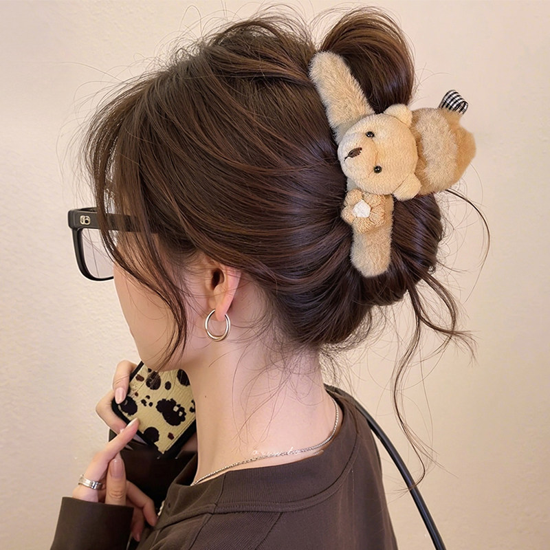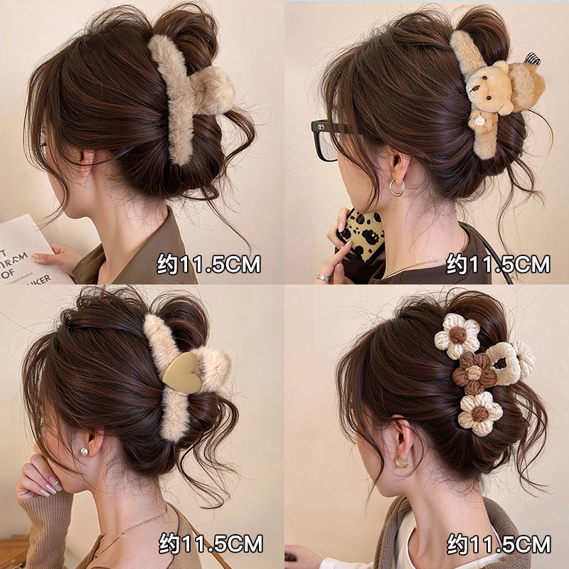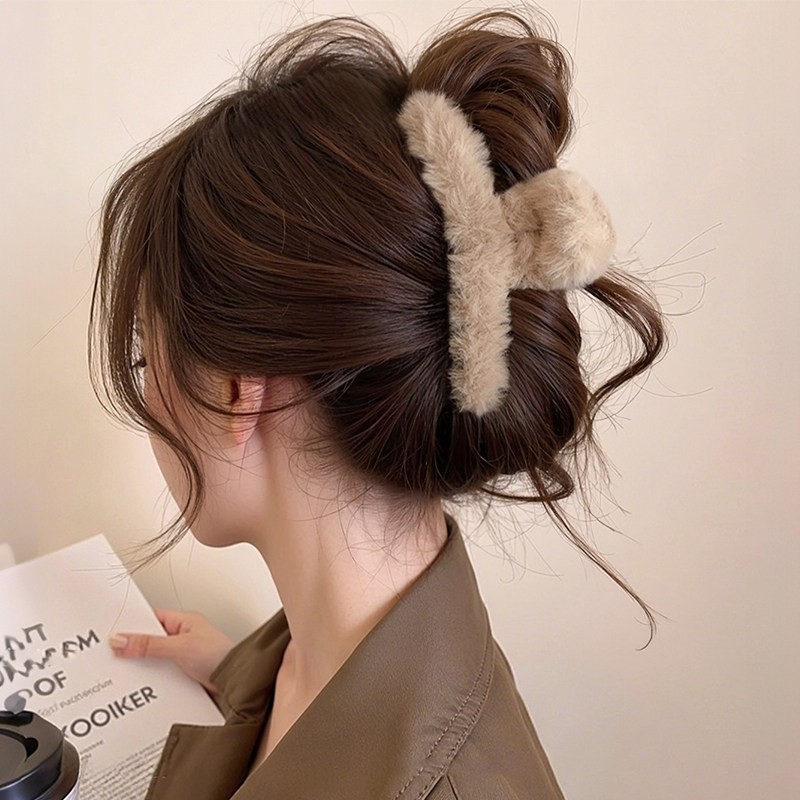 高级感大号头发抓夹女2025新款毛绒鲨鱼夹后脑勺发夹盘发夹子头饰