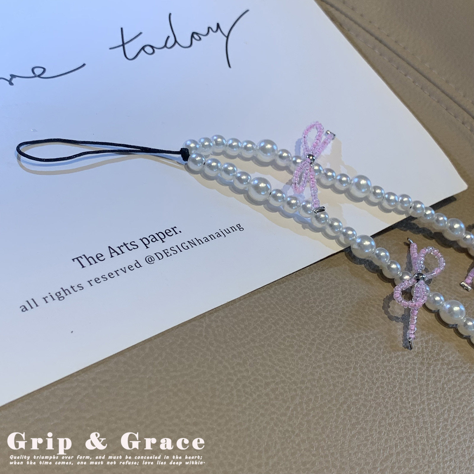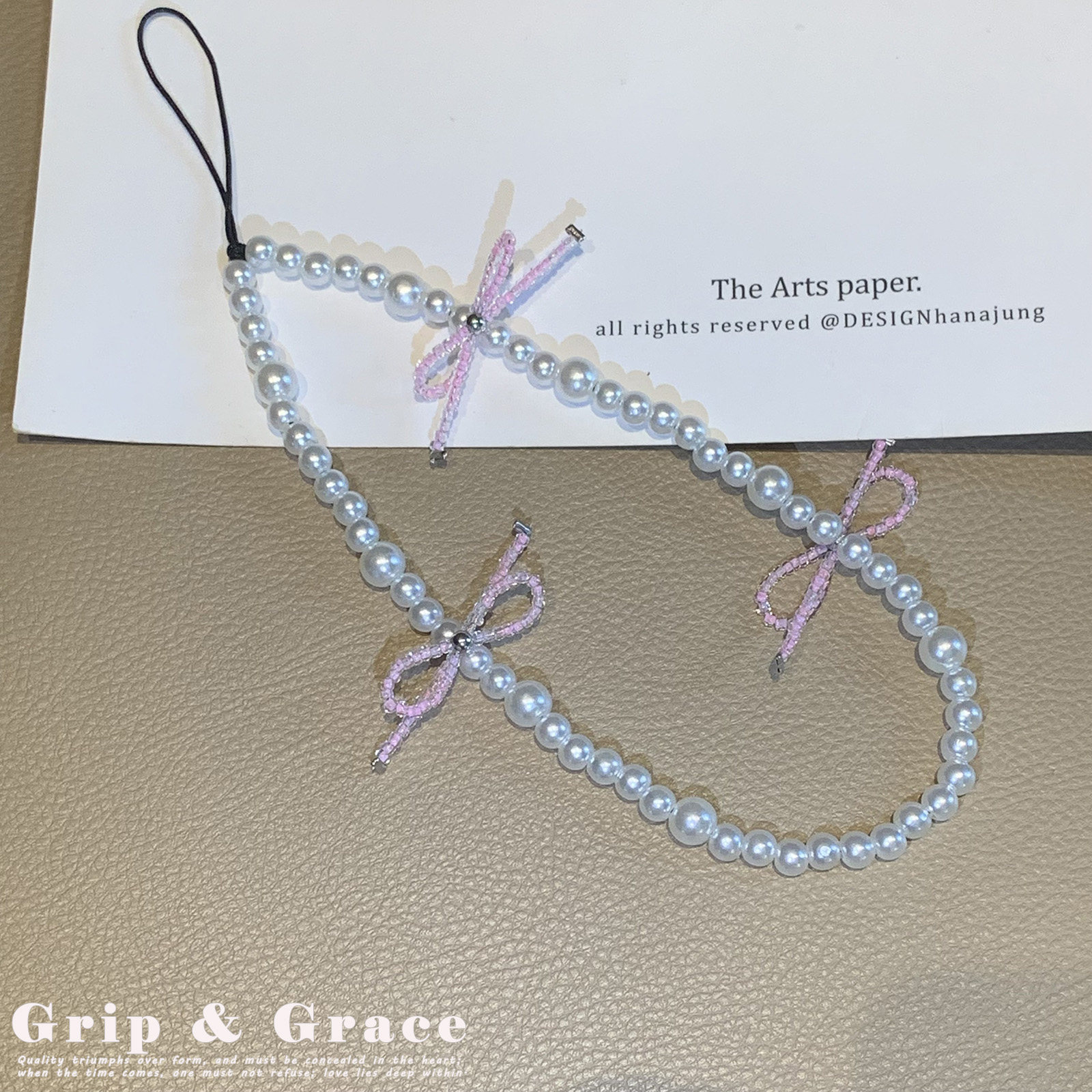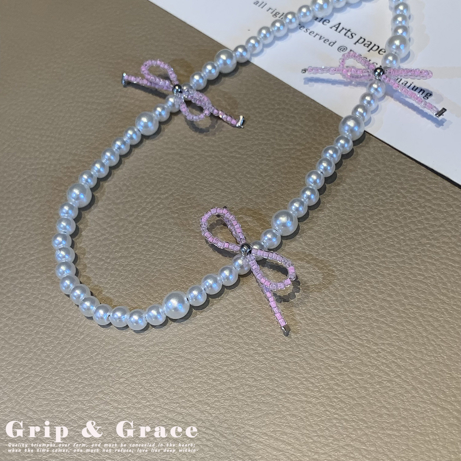 简约轻奢风手机链优雅蝴蝶结手机挂绳串珠ccd相机挂绳女款珍珠链