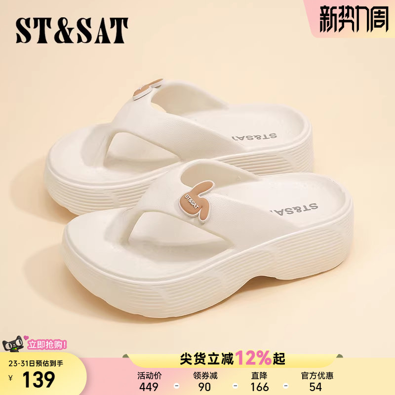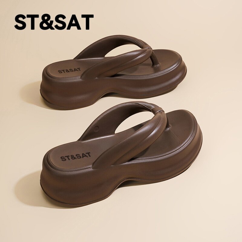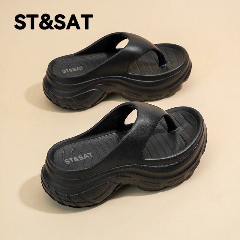 St&Sat/星期六新款休闲人字拖女厚底防滑外穿踩屎感夏季青年拖鞋