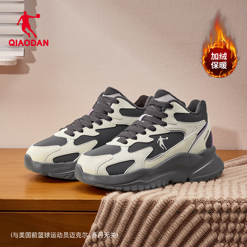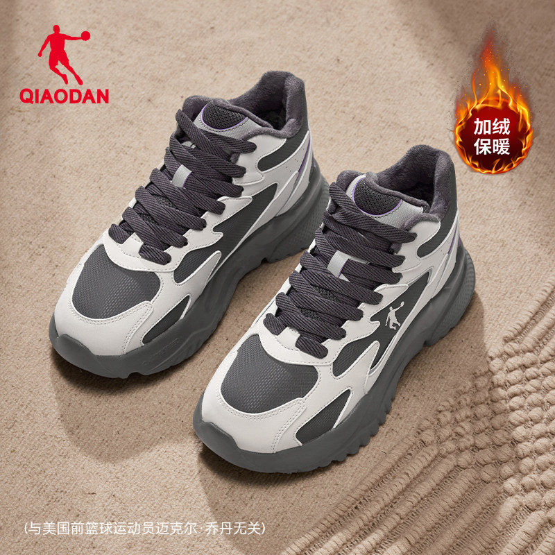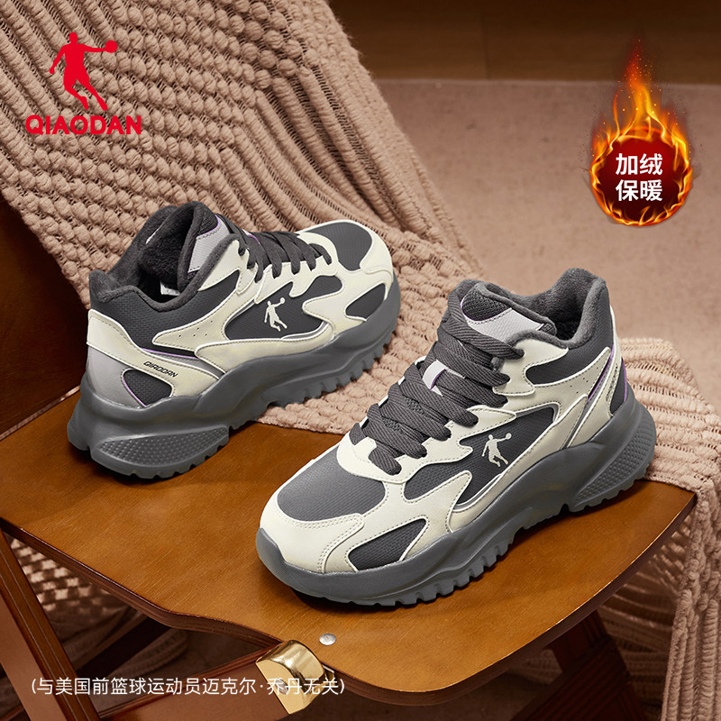 乔丹小千禧皮面防水休闲鞋女2025新款加绒保暖老爹鞋学生运动鞋子