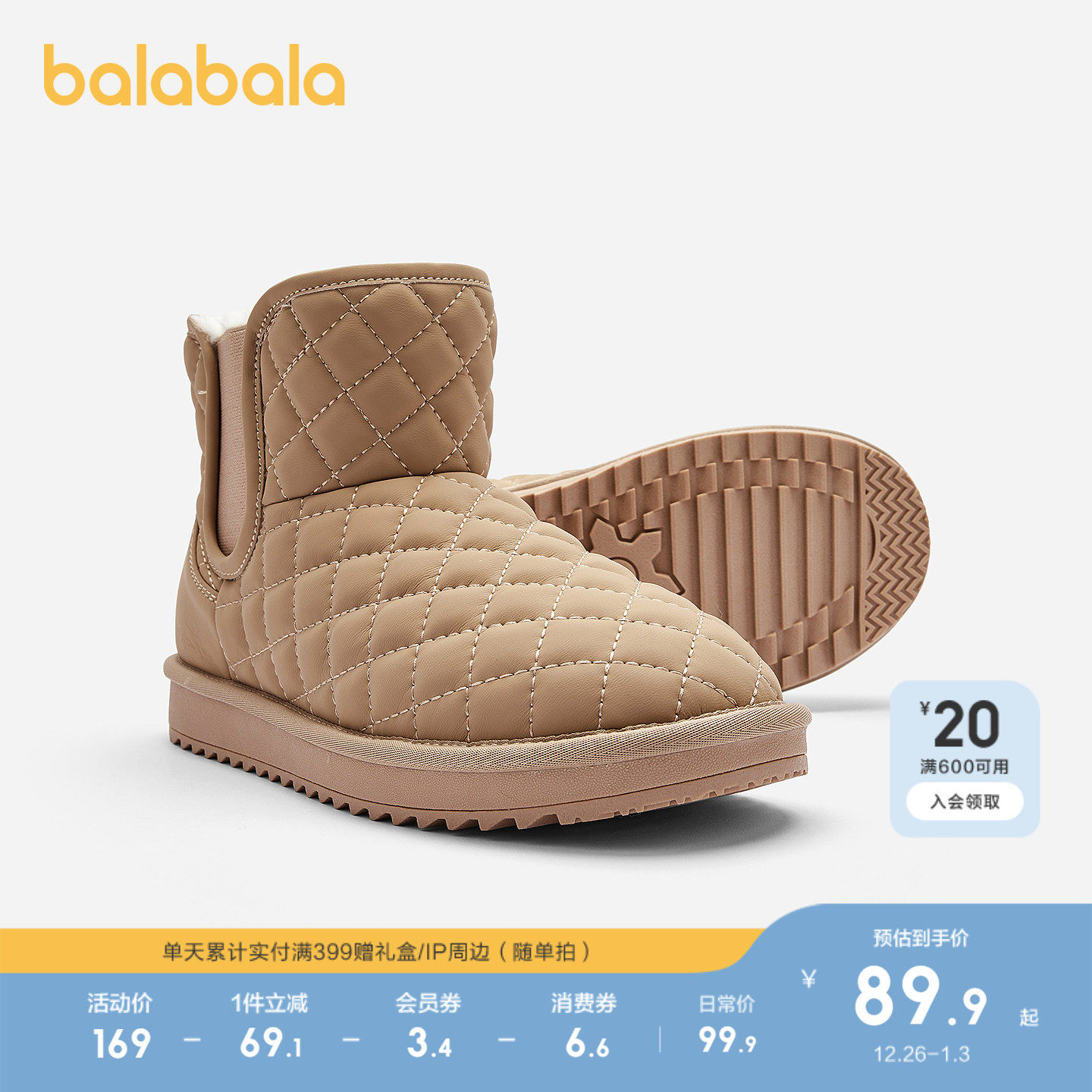 巴拉巴拉童鞋儿童雪地靴男童加厚加绒棉靴冬季靴子防滑棉鞋一脚蹬