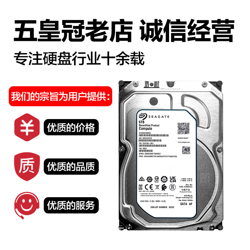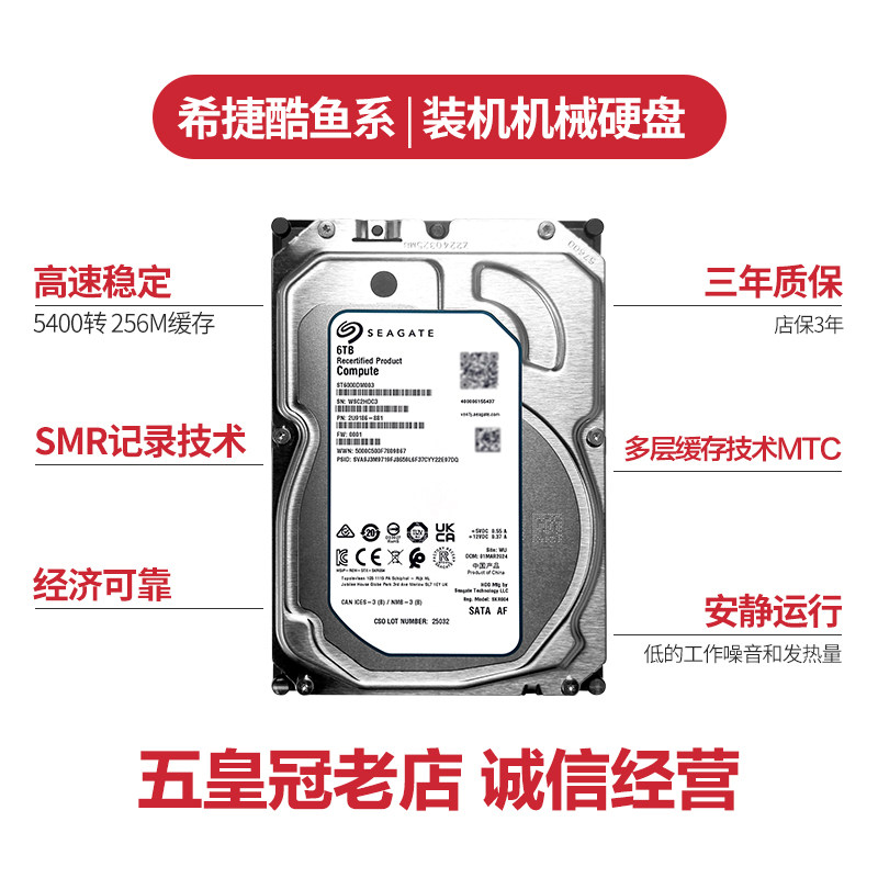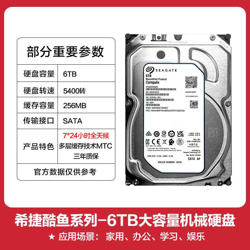 希捷酷鱼机械硬盘ST6000DM003 监控安防录像机6tb台式机3.5寸SATA