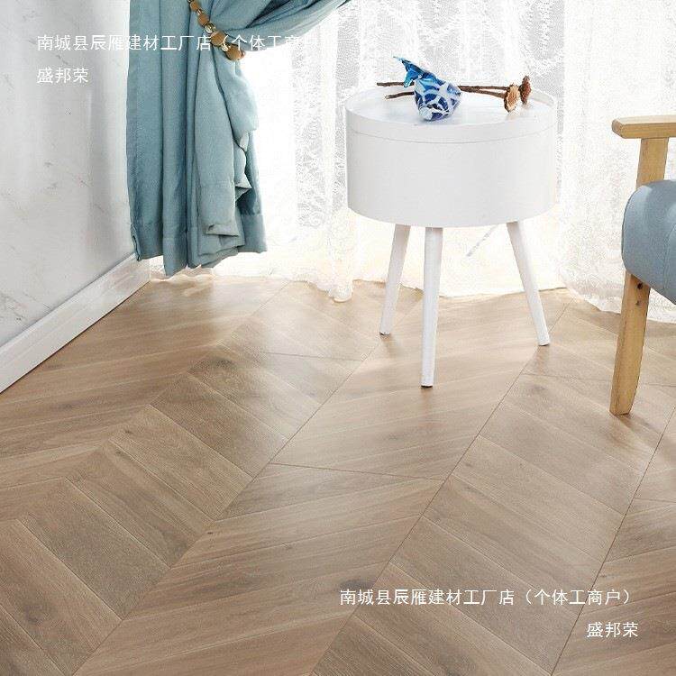 奶油风黄色家用鱼骨纹人字拼强化复合木地板轻奢简约工装展厅地板