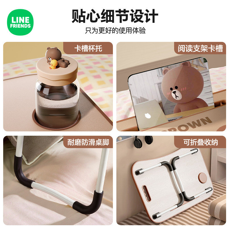 布朗熊床上小桌子折叠家用卧室飘窗电脑桌板学生宿舍便捷懒人书桌