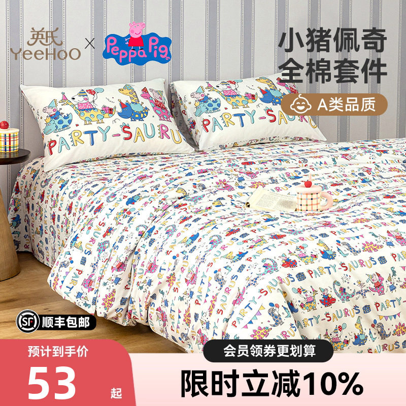 英氏A类儿童全棉四件套秋冬床单床套枕套床上用品套件全棉被套