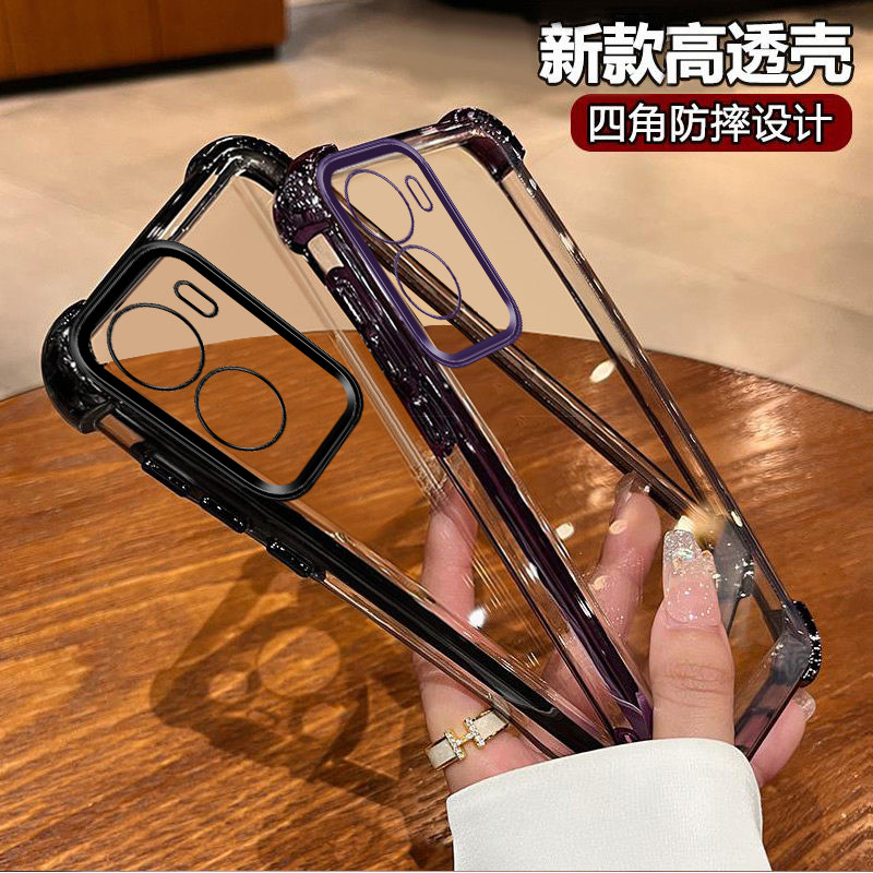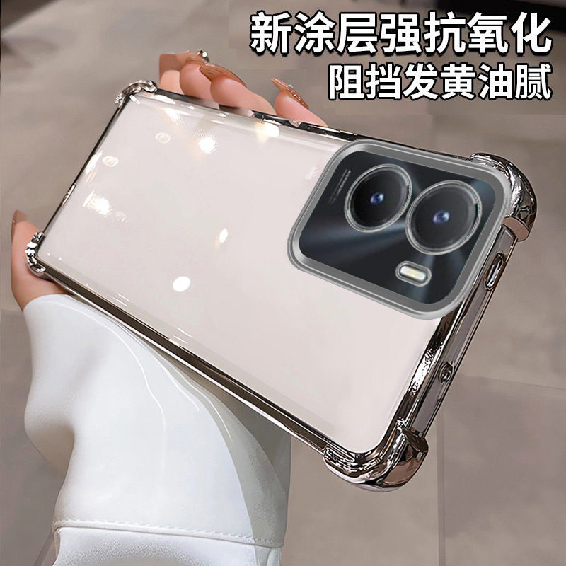 vivoY35手机壳新款Y27四角气囊硅胶防摔时尚镜头全包软壳适用Y35+高端奢华强抗氧化简约Y35m+电镀透明手机壳
