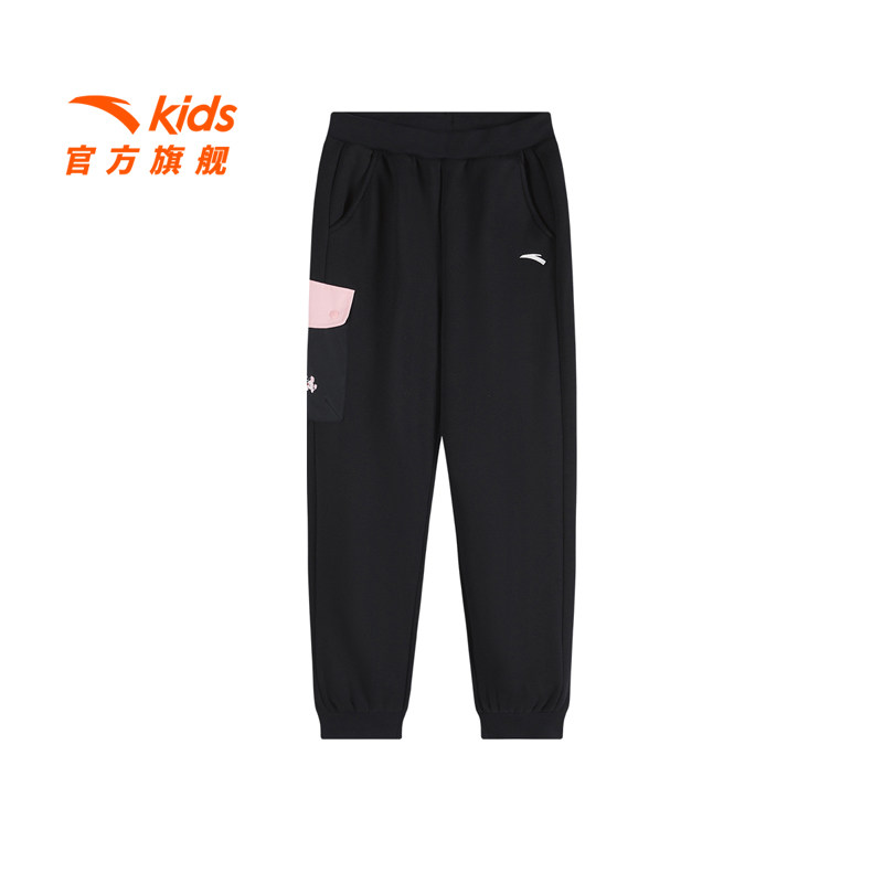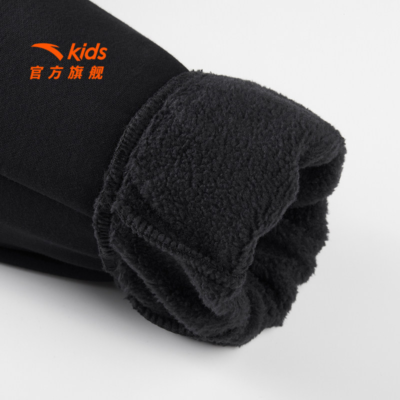 安踏女童裤子运动长裤2025冬新款大童加绒保暖束腿裤加厚黑色裤子