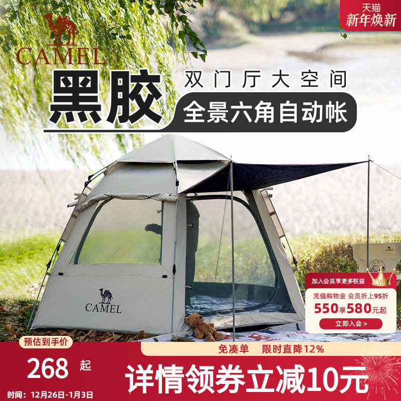 骆驼六角帐篷户外野营过夜冬季野餐全自动速开露营全套装备免搭建
