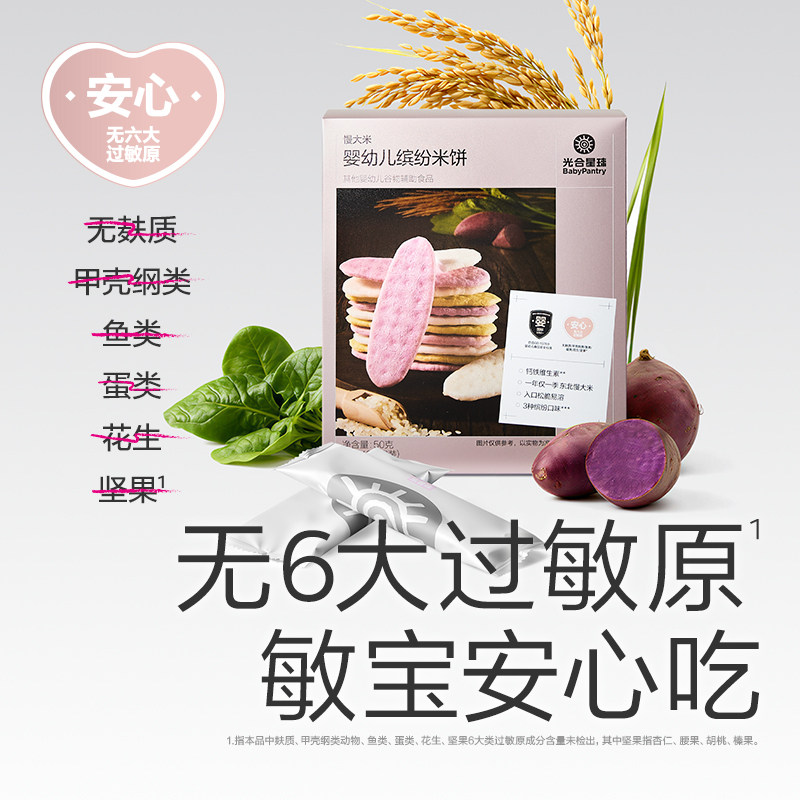 光合星球婴儿低敏缤纷米饼无麸质儿童零食宝宝饼干磨牙6个月以上