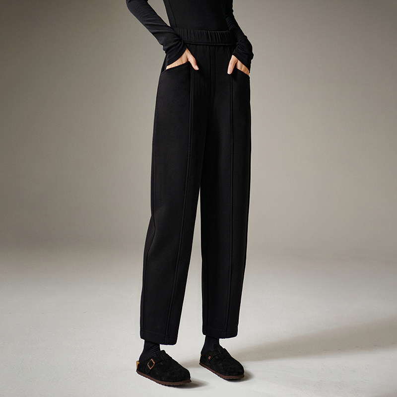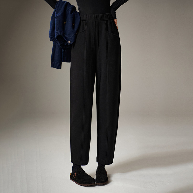 晚白【断码清仓】冬加厚裤子全毛呢九分哈伦裤女