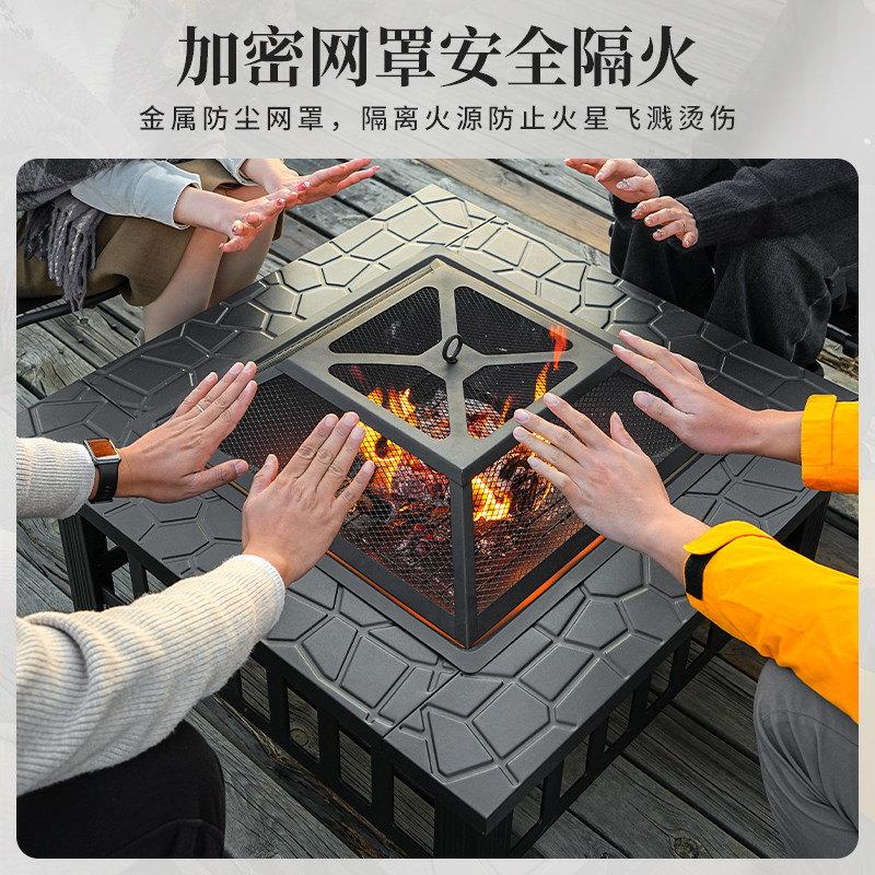 户外烧烤炉家用烤火围炉煮茶柴火取暖炉庭院篝火盆别墅桌2025新款