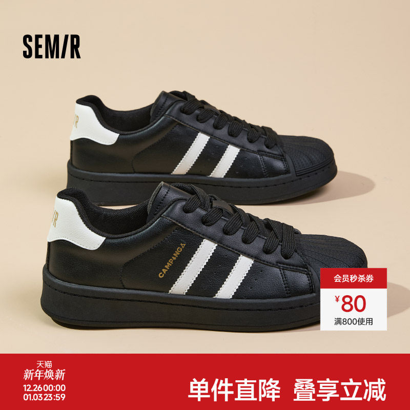 Semir男鞋板鞋2025秋冬新款黑色鞋子男士透气休闲运动鞋百搭潮鞋